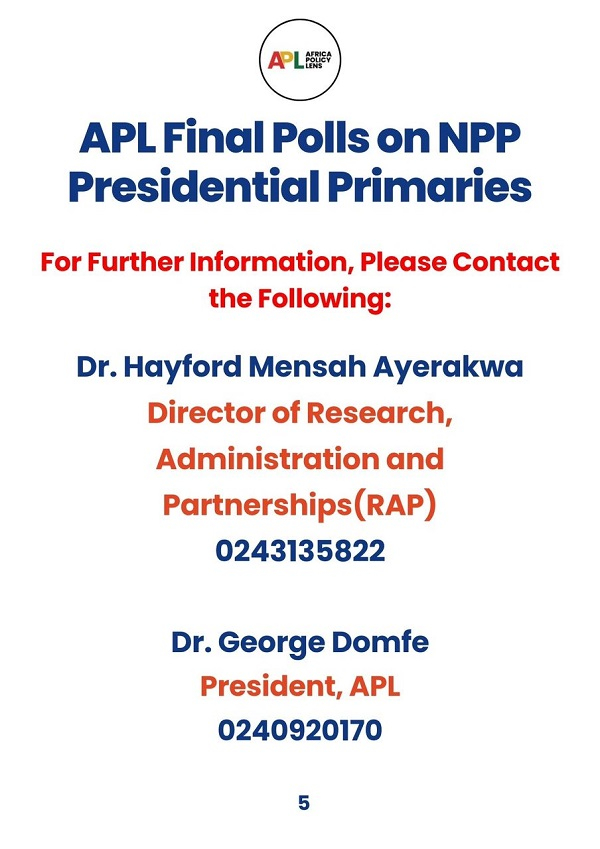 The Africa Policy Lens (APL) has tipped former Vice President Dr Mahamudu Bawumia to win Saturday’s NPP race in the first round emphatically.