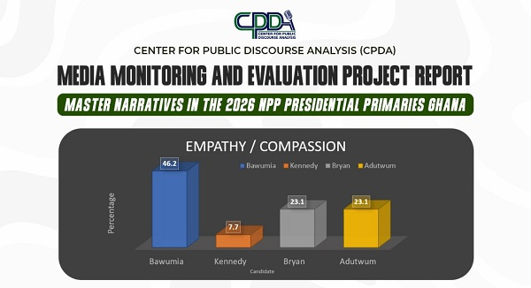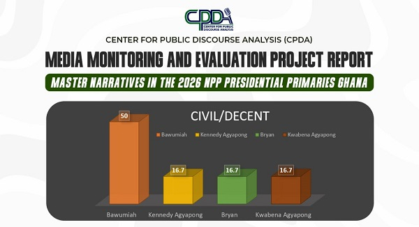 According to CPDA, the emphasis on competence and unity suggests that both candidates and the media prioritised leadership credibility and party consolidation over personality-driven narratives in the NPP flagbearer race.