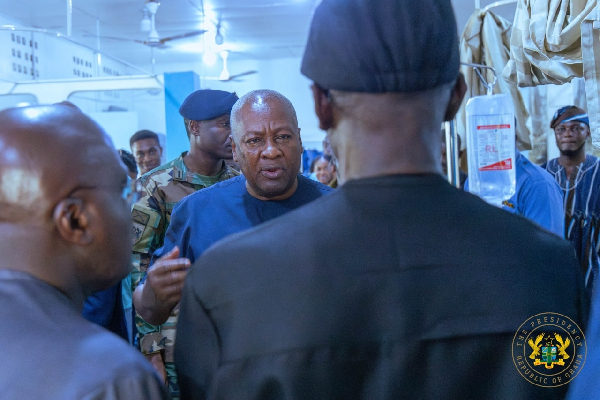 President Mahama, after completing an official assignment in Takoradi, immediately went to the hospital upon his return to Accra to receive first-hand reports of the incident and extend his support to the victims.
