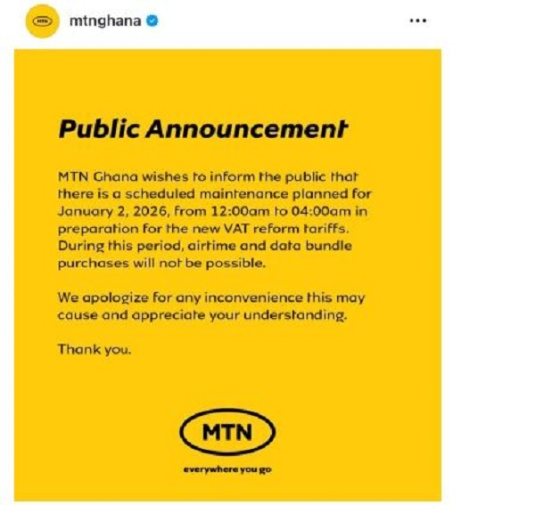 According to MTN Ghana, the maintenance exercise is a proactive step to ensure its billing and sales systems remain fully compliant and functional under the revised VAT regime.