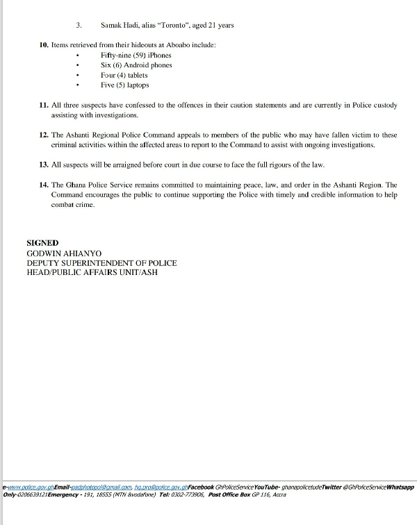 The police further stated that after committing the attack, the suspects went into hiding at a hideout at Aboabo, Kumasi, where they were later arrested by a joint team from the regional police headquarters and the Anti-Robbery Unit in Kumasi.