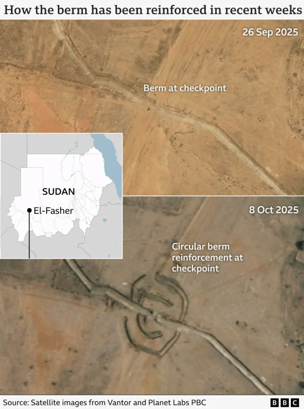People are now completely trapped with no hope of escape as the RSF recently completed a 57km (35-mile) earthen wall around the city.