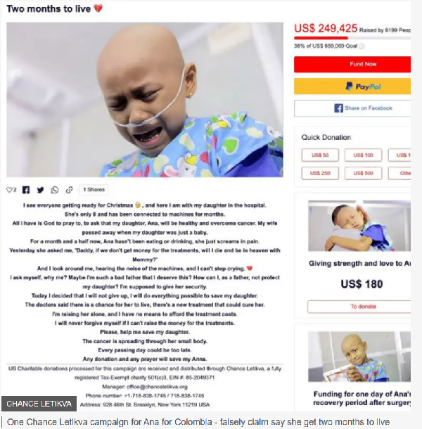 BBC find out say scammers scam children wey get cancer millions from money dem raise for dia treatment