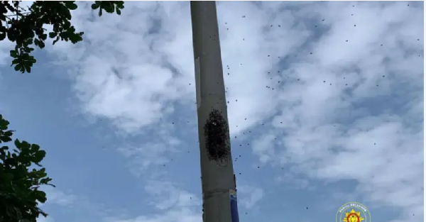 "Di crew manage to control di situation without any damage to property, casualties or injuries to di public or di firemen. We also clear di swarm of bees completely," di Eastern region fire service tok-tok pesin add.