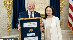 Venezuelan Nobel Peace Prize winner carry her medal present to Trump