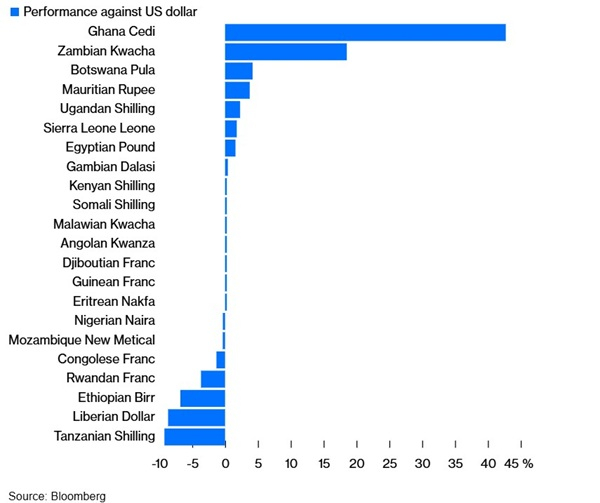 Ghana’s local currency, the cedi, has been ranked among the three best-performing currencies in Africa, according to a recent report by Bloomberg.