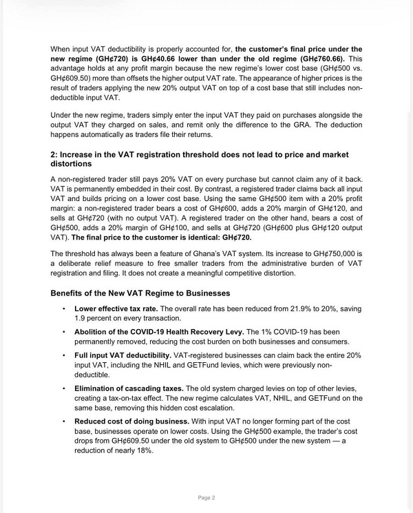 According to the GRA, when input VAT deductions are correctly applied, the new VAT regime should lead to lower, not higher, consumer prices.