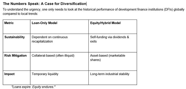 NIB survived because it invested in real businesses and waited. EXIM Bank and the Development Bank now have the opportunity to do even more. By adopting an equity-led strategy, both banks can move from being lenders of last resort to builders of first-class industries.