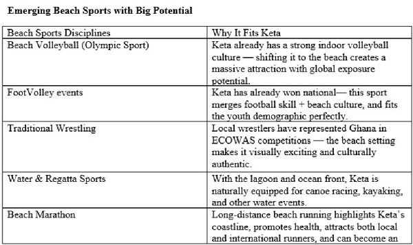 With intentional planning, structured programming, and investment, Beach Sports Tourism can become Keta’s new economic engine — transforming the town into a thriving hub of sport, culture, recreation and coastal tourism.