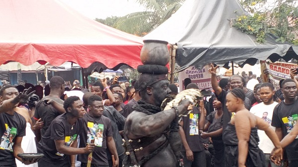The priests, comprising men, women, are showcasing their deep-rooted belief in Asante traditions and culture as they pay their respects to the revered queen mother.