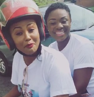 Nana Ama McBrown rides Okada with Emelia Brobbey