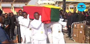 Casket of Nana Konadu Agyeman-Rawlings arrives at Black Star Square
