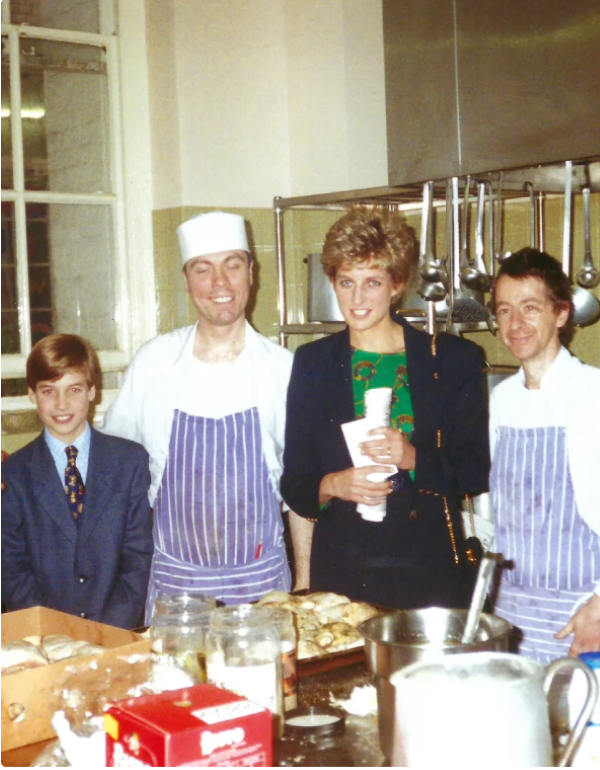 Prince William and Diana, the late Princess of Wales, pictured with chefs at The Passage, London in December 1993