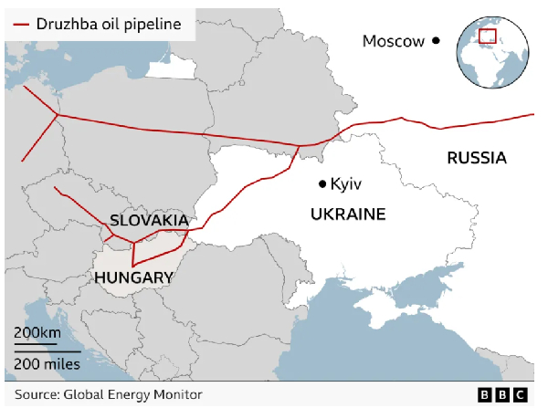 At the core of the dispute is the disruption of the Druzhba (Friendship) pipeline on which Hungarian and Hungarian-run Slovak refineries depend.