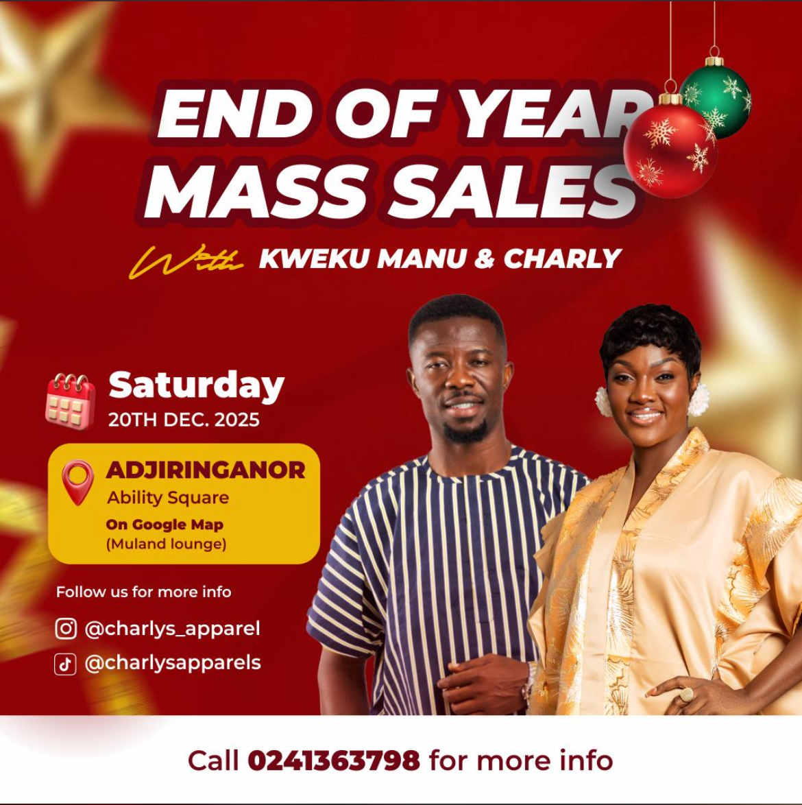 As the year draws to a close, shoppers in Accra are set for an exciting retail experience as Kwaku Manu and Charly host the End of Year Mass Sales, a special shopping event aimed at delivering quality fashion, great deals, and a festive shopping atmosphere.