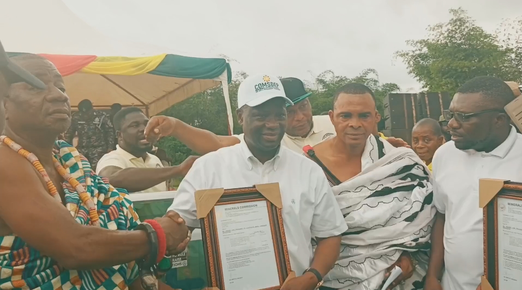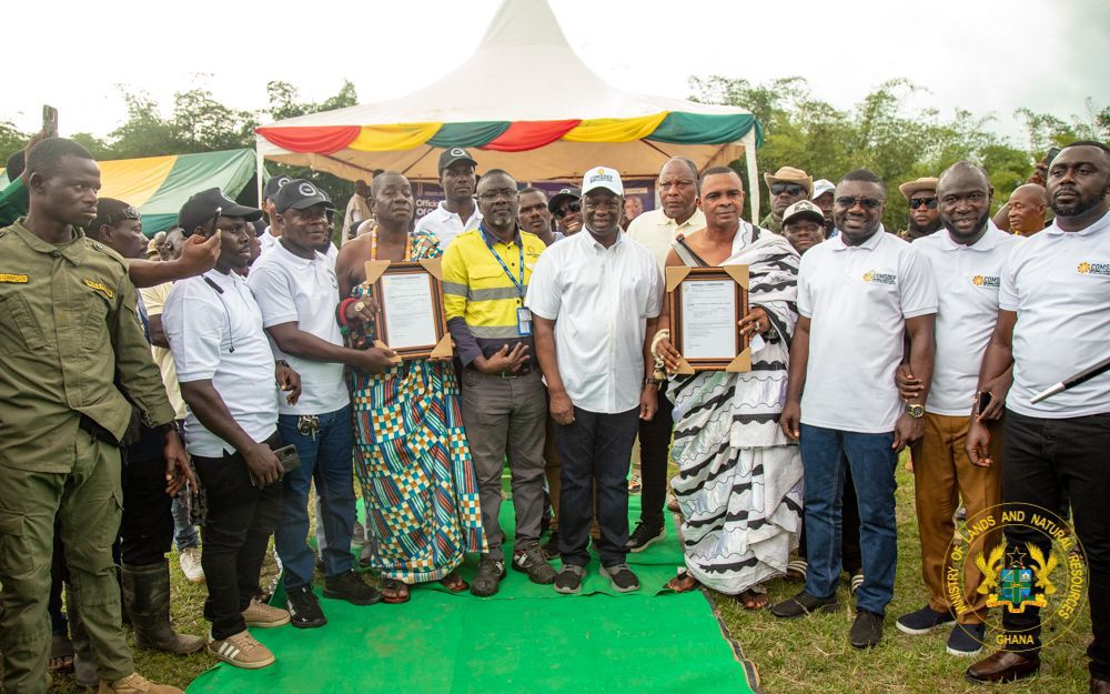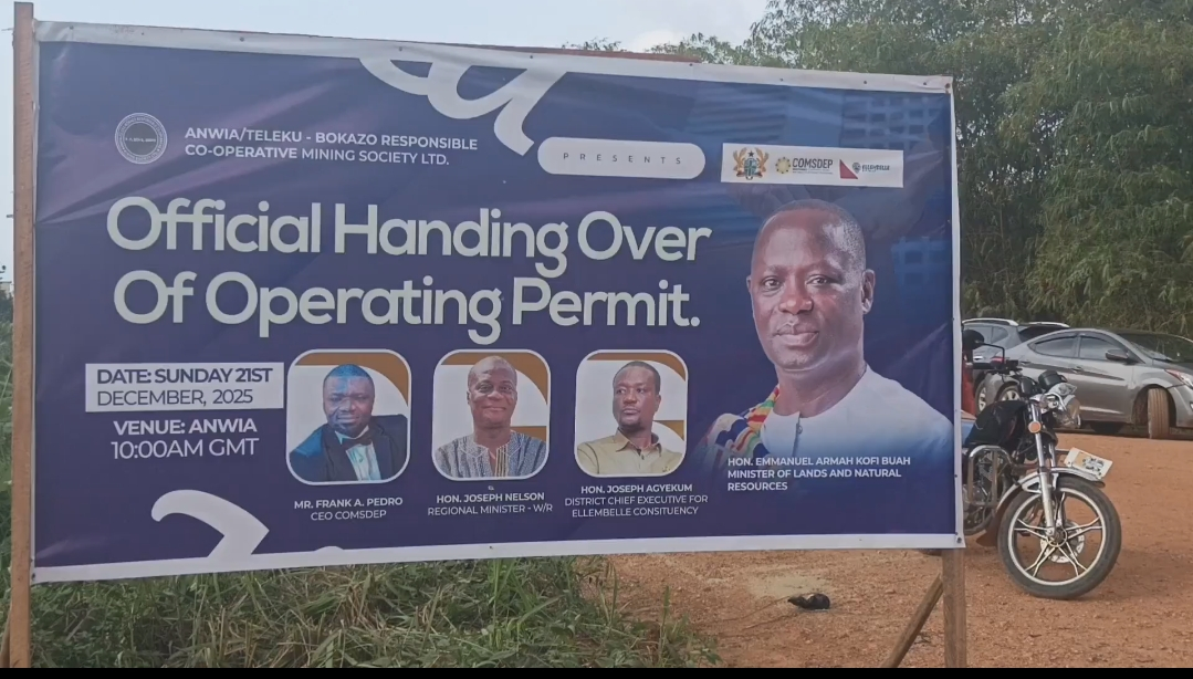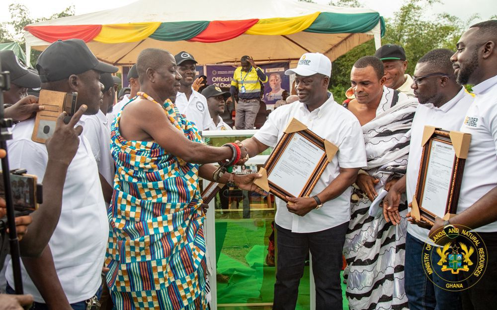 Emmanuel Armah-Kofi Buah, Ghana's Lands and Natural Resources Minister, has officially handed over mining operating permits to the Anwia and Teleku-Bokazo Responsible Cooperative Mining Society Ltd in the Ellembelle District of the Western region.