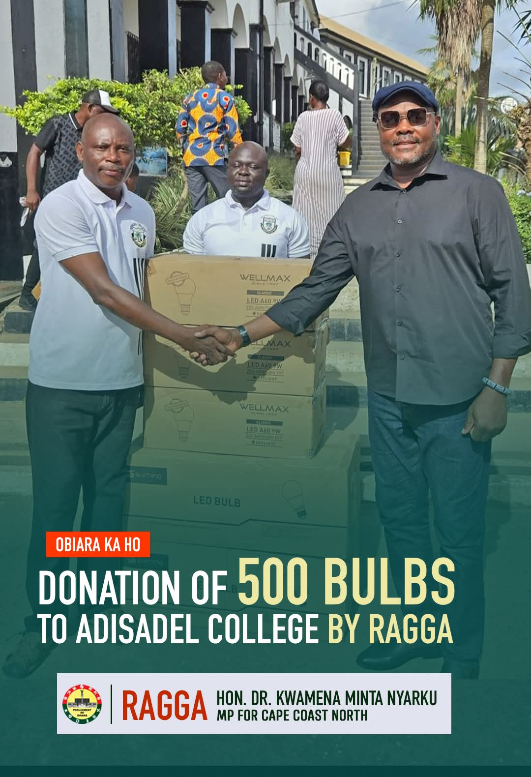 Cape Coast – The Member of Parliament for Cape Coast North, Dr. Kwamena Minta Nyarku, has donated 500 LED bulbs to his alma mater, Adisadel College, to address persistent lighting challenges in classrooms, dormitories, and other areas across the school campus.