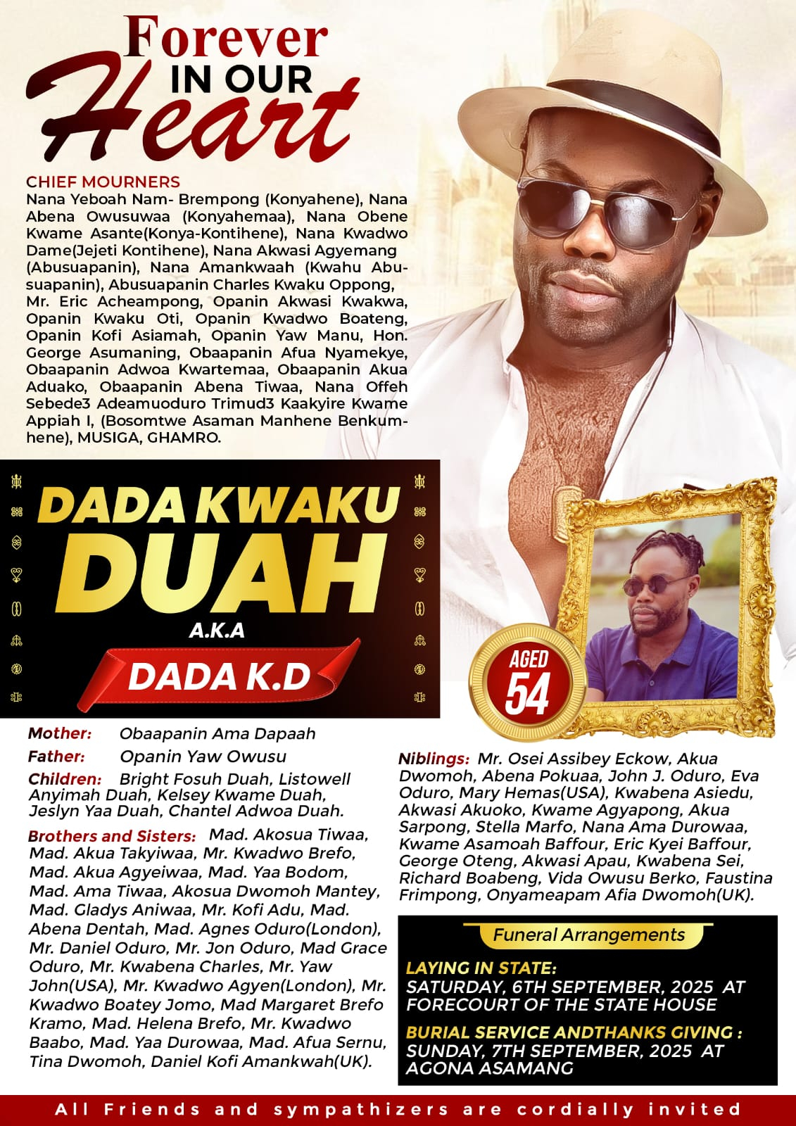 The family of the late Ghanaian highlife icon, Dada KD, has officially released details of his final funeral rites, inviting the general public, fans, colleagues, and sympathizers to join them in honouring the life and legacy of the celebrated musician.