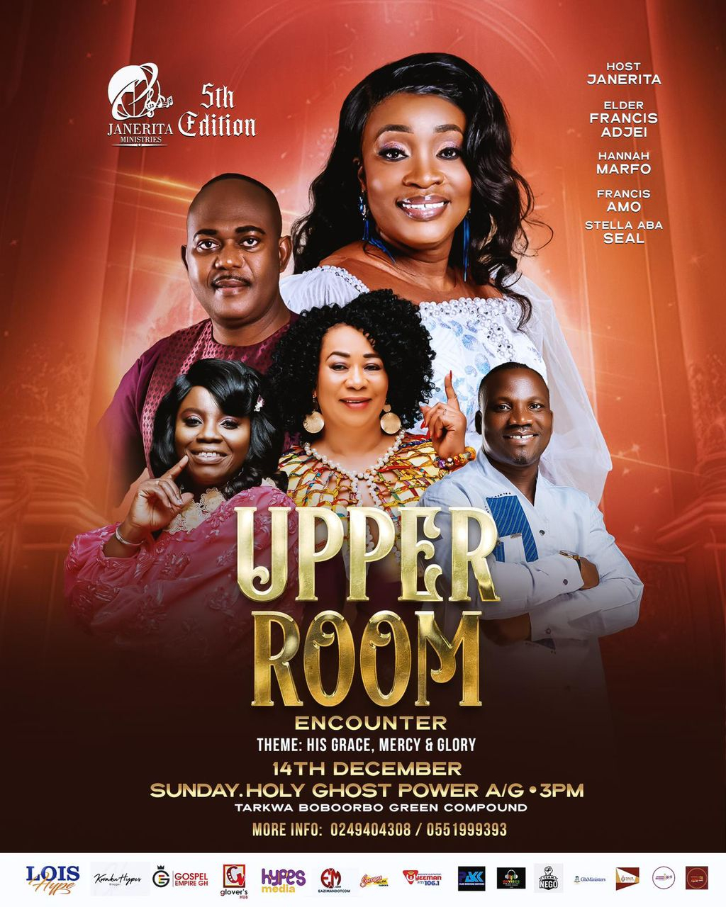 Tarkwa, get ready! Janerita is hosting the 5th edition of the Upper Room Encounter on 14th December 2025 at the Holy Ghost Assemblies of God Church. This year’s gathering promises an unforgettable night of worship, prayer, and deep spiritual renewal.