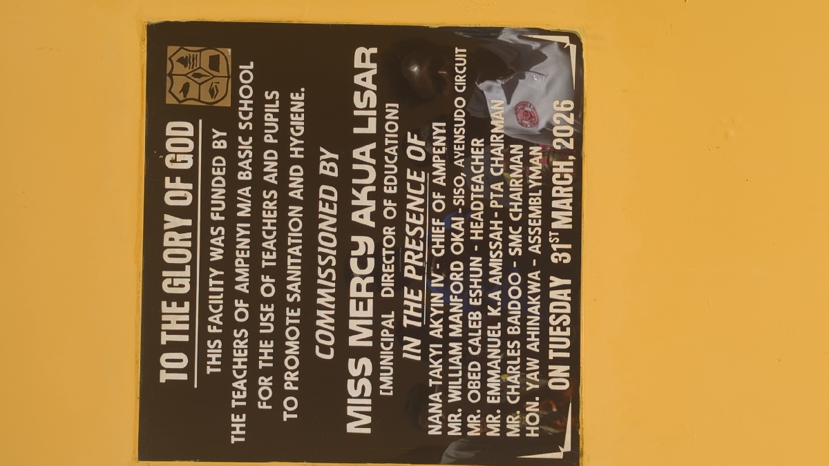 Ampenyi M/A Basic School has taken a major step forward in improving infrastructure and student welfare, following the commissioning of a new washroom facility, the unveiling of a regimental band, and a sod-cutting ceremony for a new assembly grounds.