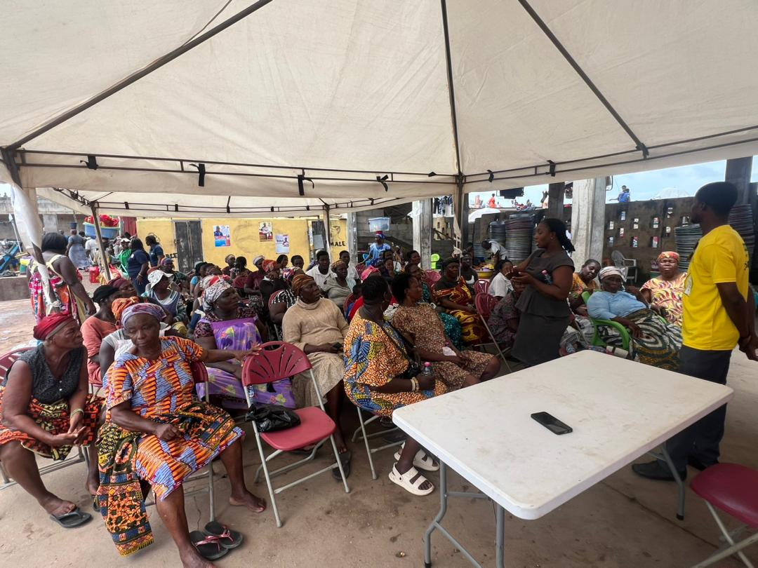Mad Nicholina Naa Yeye Adumuah, Central Regional Branch Manager, briefed the fish sellers on micro insurance, highlighting its benefits and encouraging them to participate. She emphasized that micro insurance is available to all persons, regardless of the size of their work or whether they're on payroll or monthly paid workers. Mad Adumuah stressed the importance of registering for micro insurance to receive support in case of accidents.