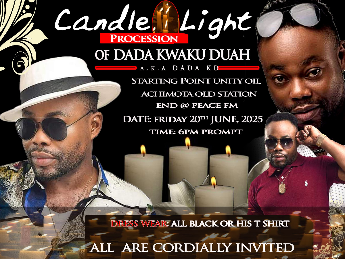 The candlelight procession will bring together fans, family, friends, and industry colleagues to honor Dada KD's memory and celebrate his impact on Ghanaian music. The one-week celebration will feature various activities, including musical performances, tributes, and reflections on Dada KD's life and career.