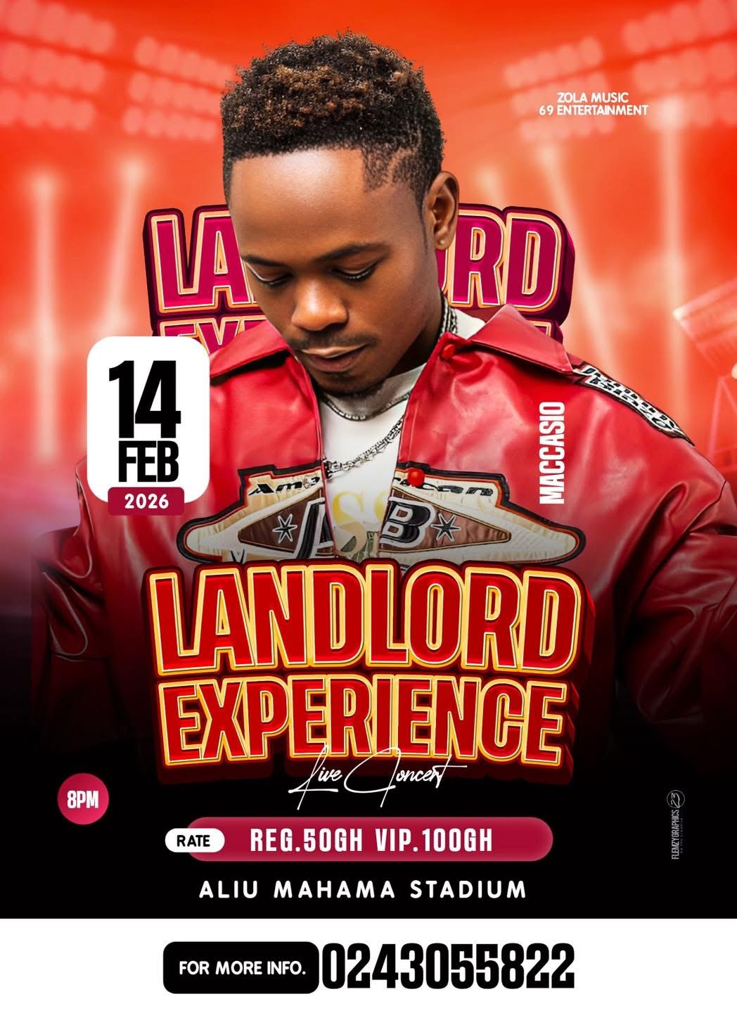 Titled “Landlord Experience,” the concert takes its inspiration from “Landlord,” one of the standout songs on Maccasio’s latest 6-track EP, which also bears the same title. The project has enjoyed impressive reception across streaming platforms, radio airwaves, and among music lovers nationwide, further cementing Maccasio’s relevance and dominance in the Ghanaian music industry.