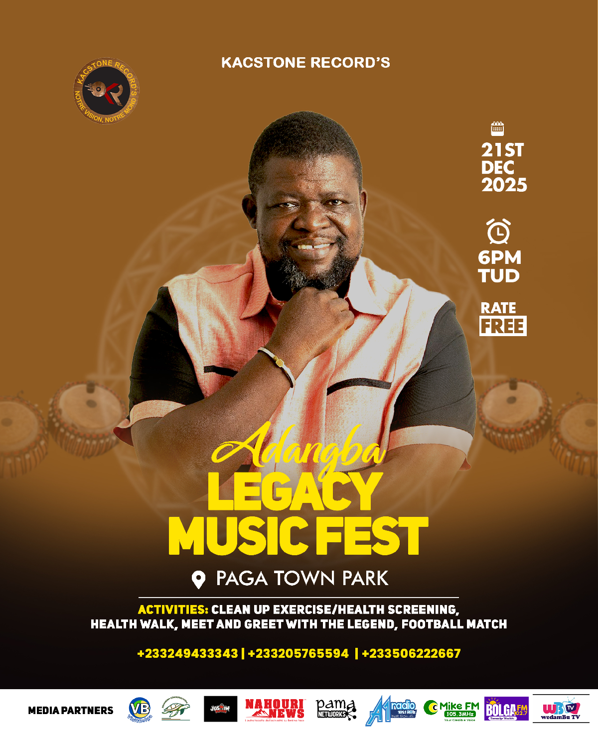 Celebrated Ghanaian traditional musician Michael Adangba is set to mark another milestone in his illustrious career with the maiden edition of the “Legacy Music Fest,” scheduled for December 21, 2025, at the Paga Town Park. The event, which honors his journey, resilience, and enduring contribution to Ghanaian culture, promises a full day of impactful activities and unforgettable entertainment — all free to the public.