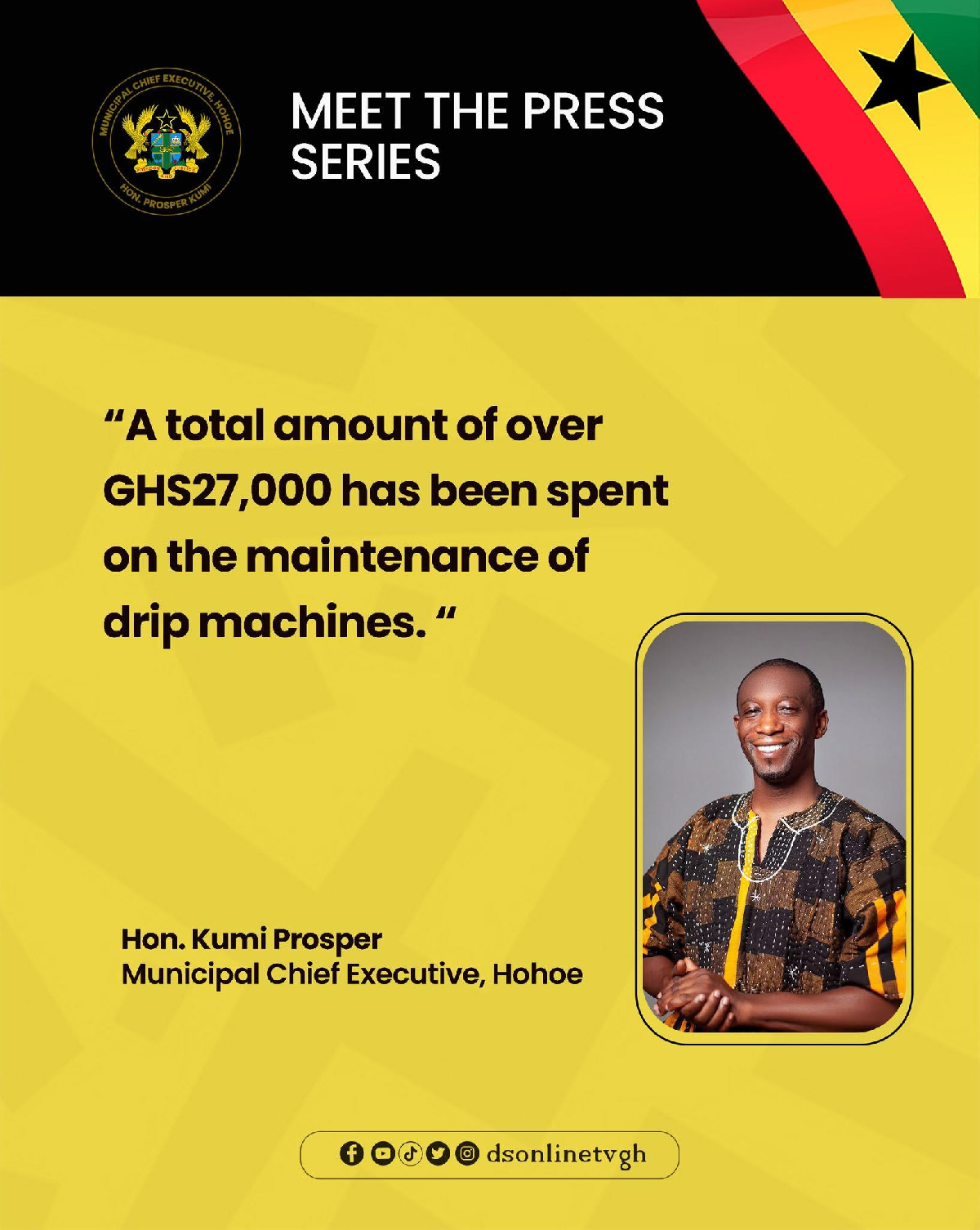 The Municipal Chief Executive (MCE) for Hohoe, Mr. Prosper Kumi, has revealed that the Hohoe Municipal Assembly has spent GHS27,000 on the maintenance of DRIP machines used for road works in the municipality.