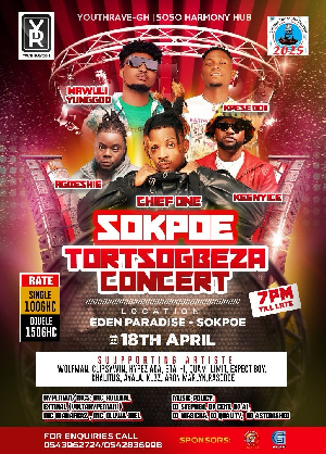 Youth Rave, the organizers of this year’s Sokopoe Tortsogbeza Concert has set the tone for an electrifying night with their line-up of musicians and activities. The event is scheduled to take place on the 18th of April 2025 at Eden’s Paradise - Sokpoe.