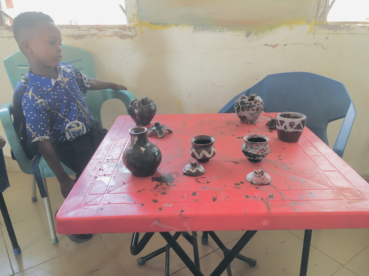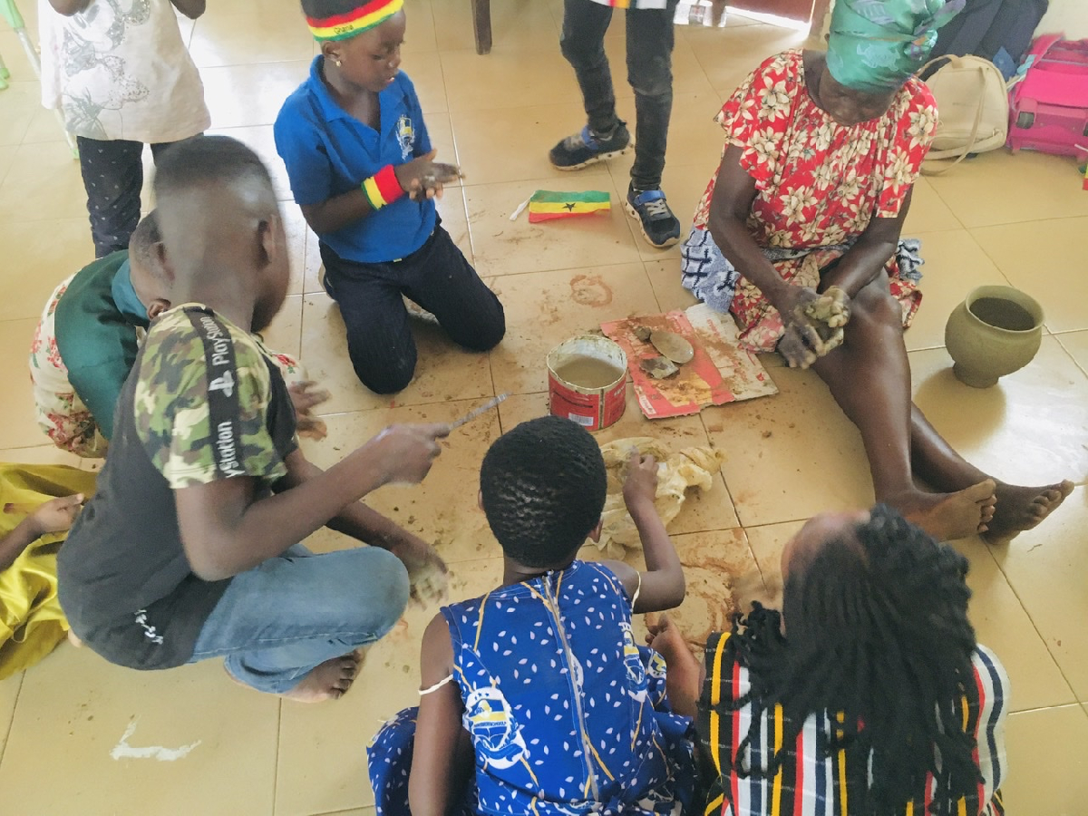 Pupils then rolled up their sleeves, molding clay pots, sketching traditional symbols, and weaving baskets alongside local artisans.