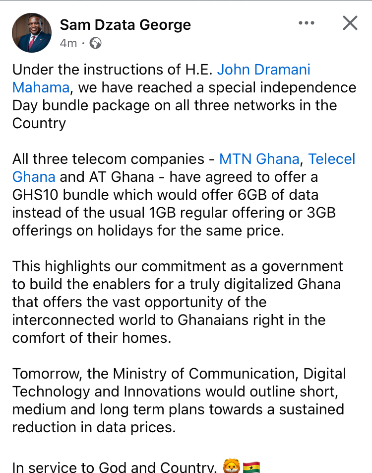 Sam George emphasized the government’s commitment to advancing digital inclusion, stating the move underscores efforts to “build enablers for a truly digitalized Ghana” and expand access to global opportunities for citizens. The promotion aligns with broader plans to reduce data costs sustainably.