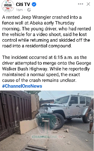 A young driver has landed in trouble after crashing a rented Jeep Wrangler into a fence wall at Abeka. The incident occurred early Thursday morning around 6:15 a.m. and has left the driver facing potential sanctions from the rental company.