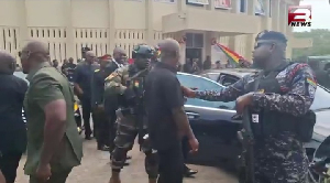 The guards tried to stop him, but he persisted and made his way past them. He approached Mahama's car and waved at him through the window before retreating.