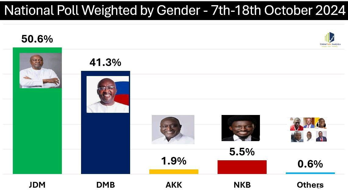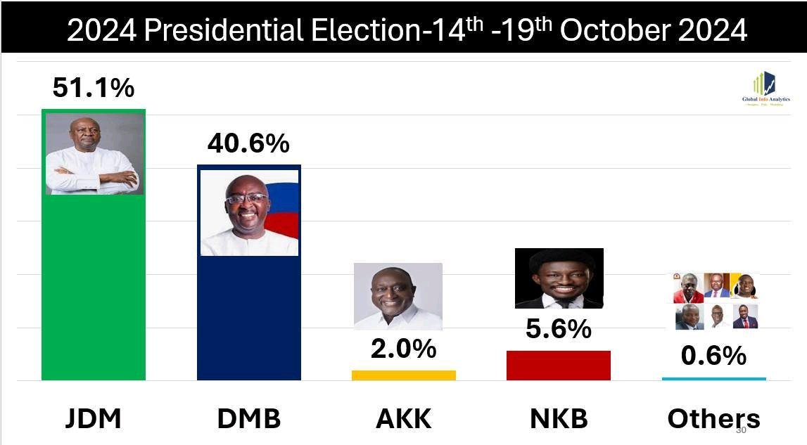 Ghanaians are abuzz with excitement as the latest poll results from Global Info-analytics predict a winner for the 2024 elections! According to the polls, the National Democratic Congress (NDC) is on track to secure a majority in parliament, with 52% of voters planning to cast their ballots for NDC candidates . This is certainly a thrilling development, especially considering the intense competition between the NDC and the New Patriotic Party (NPP).