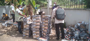 The Ho Customs Division of the Ghana Revenue Authority (GRA) has destroyed a large quantity of seized goods, including 680 cartons of Vody Vodka energy mix, which were imported illegally. The goods were seized from a trader at Asikumah, and their destruction was carried out by a team from the Ho Municipal Environmental Office, with officials from the Food and Drugs Authority and the National Investigation Bureau in attendance.