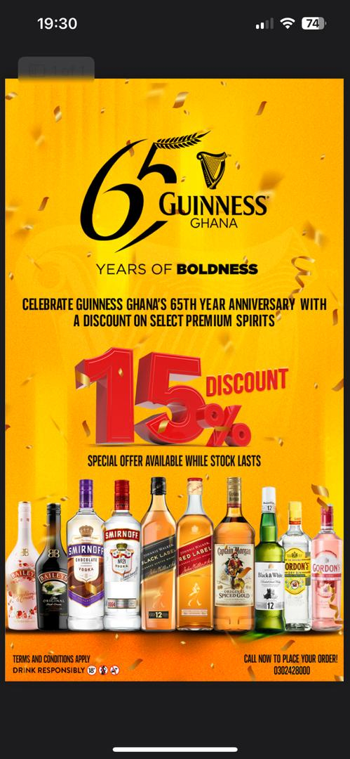 As part of its 65th anniversary celebrations, Guinness Ghana is proud to announce a 15% price reduction on a selection of its premium spirits as a heartfelt gesture of appreciation to the people who have powered its journey over the past six and a half decades.