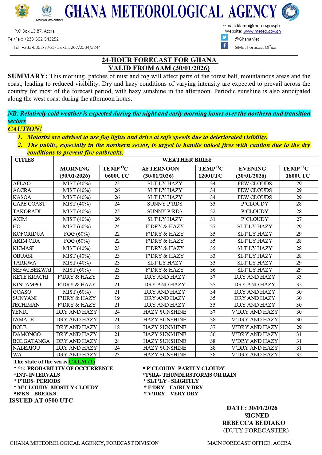 The public is also advised to manage naked fires with extreme caution, especially those who live in the northern sector. The existing dry conditions enhance the risk of fire outbreaks, which can spread swiftly and wreak considerable damage to buildings, farmlands, and life. Steer clear of indiscriminate burning, make sure that fires are entirely put out after use, and notify the appropriate authorities right once of any fire occurrences. As the nation faces these prevailing weather conditions, staying informed and following these safety measures will help safeguard lives and property.