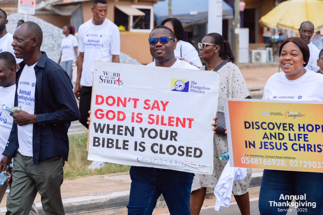 As part of its 2025 Annual Thanksgiving Service, the Jospong Group of Companies (JGC) on Thursday, December 11, embarked on a massive evangelism mission within the Adjrigarnor enclave where its head office is located to win souls for Christ.