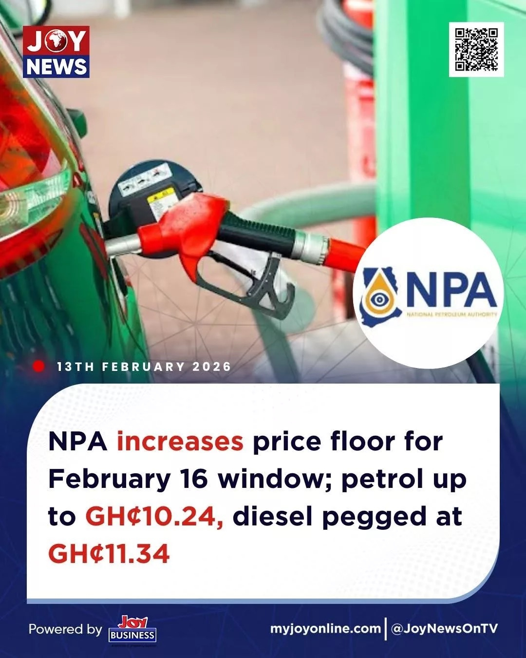 According to the National Petroleum Authority, the cost of gasoline and diesel has gone up. The disclosure was made by the NPA today, February 13, 2026, as dusk was approaching. The NPA stated that the prices of gasoline and diesel would change on Monday, February 16. The price of gasoline will be 10.24 cedis and diesel will be 11.34 cedis starting Monday, according to the NPA. It should be mentioned that the devaluation of the cedi and the increase in the cost of completed petroleum products have an impact on the new price.