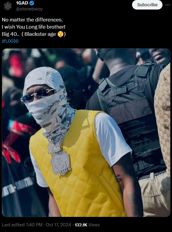 When dancehall artist Stonebwoy sent his longtime "arch-rival" Shatta Wale a birthday greeting on X (previously Twitter), many were taken aback. Shatta Wale celebrated his 40th birthday at the same time as the unexpected public act of kindness.