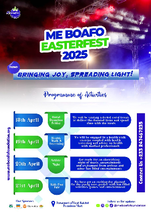 But it’s not just about fun — Me Boafo Easter Fest 2025 also cares for the community’s well-being. A special Health Walk & Screening on April 19th will promote fitness and wellness, with medical professionals offering free screenings and health education to residents.