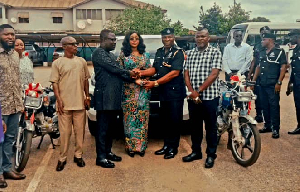 Hon. Millicent Yeboah Amankwah urged the regional police command to put the vehicle and motorbikes into good use and encouraged residents to provide information to security services to help arrest perpetrators.