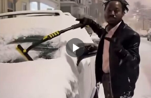 In the video, they are seen clearing snow off a car while sending a message to Ghanaians, urging them to stay in Ghana and work hard rather than seeking opportunities abroad.