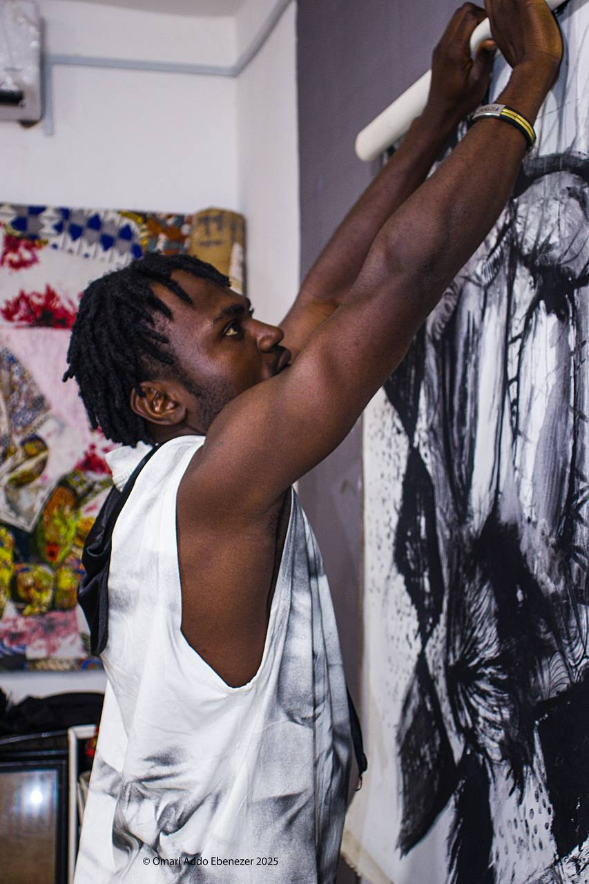 Eric Odartey Cruickshank (known online as "linesbeing") is a self-taught contemporary artist from Accra, born in 2000. Specializing in pencil drawings, charcoal, linework, paintings, murals, and more, he blends technical precision with emotional depth. As CEO of White Cube Studios GH, he champions Ghanaian talent, producing everything from custom portraits to statues and tattoos.
