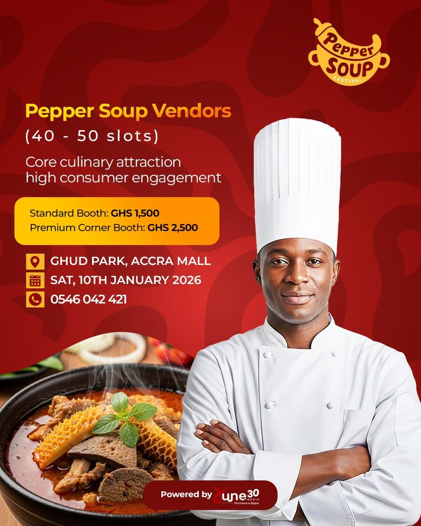 Food enthusiasts and culinary businesses across Ghana are gearing up for the much-anticipated Pepper Soup Festival scheduled for Saturday, January 10th, 2026, at GHUD Park, Accra Mall.