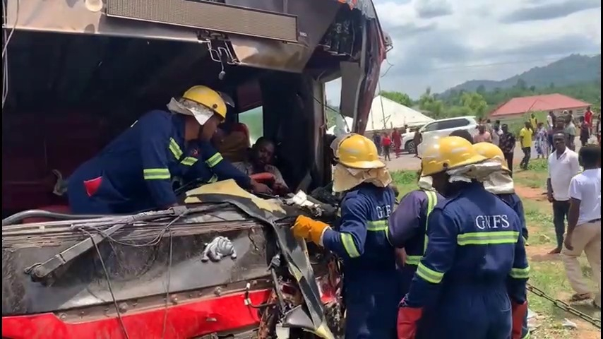 According to preliminary findings from the National Road Safety Authority (NRSA), the Sprinter bus (GS 6383-20) carrying 23 passengers from Kumasi to Assin Fosu attempted to overtake a Toyota Corolla (GE 7271-24) but collided head-on with an oncoming VIP Grandbird bus (GW 8455-23) traveling from Takoradi to Kumasi.