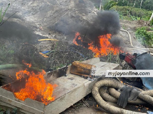 Led by NAIMOS commander Col. Dominic Buah and acting on orders from the Ministry of Lands and Natural Resources, the operation resulted in the destruction and confiscation of mining equipment at the two sites.
