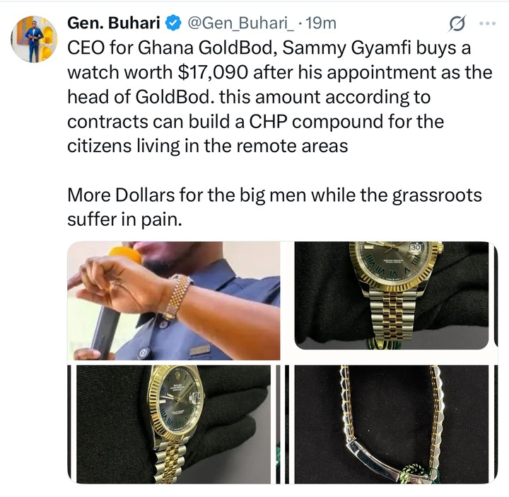 According to the post, the high-end watch normally costs $20,499 but is now available for $17,090. The author of the piece went on to suggest that this cash might be used to build a Community-based Health Planning and Services (CHPS) compound, which is a critical facility for providing healthcare in Ghana's underserved rural villages.