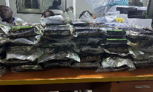 On Wednesday, April 23, 2025, officials from the Narcotics Control Commission (NACOC) intercepted a consignment at the Swiss Port containing 73 slabs of probable cocaine weighing 89.74 kilos. The package was bound for the Netherlands. Four individuals have been apprehended and are currently in custody as investigations continue.